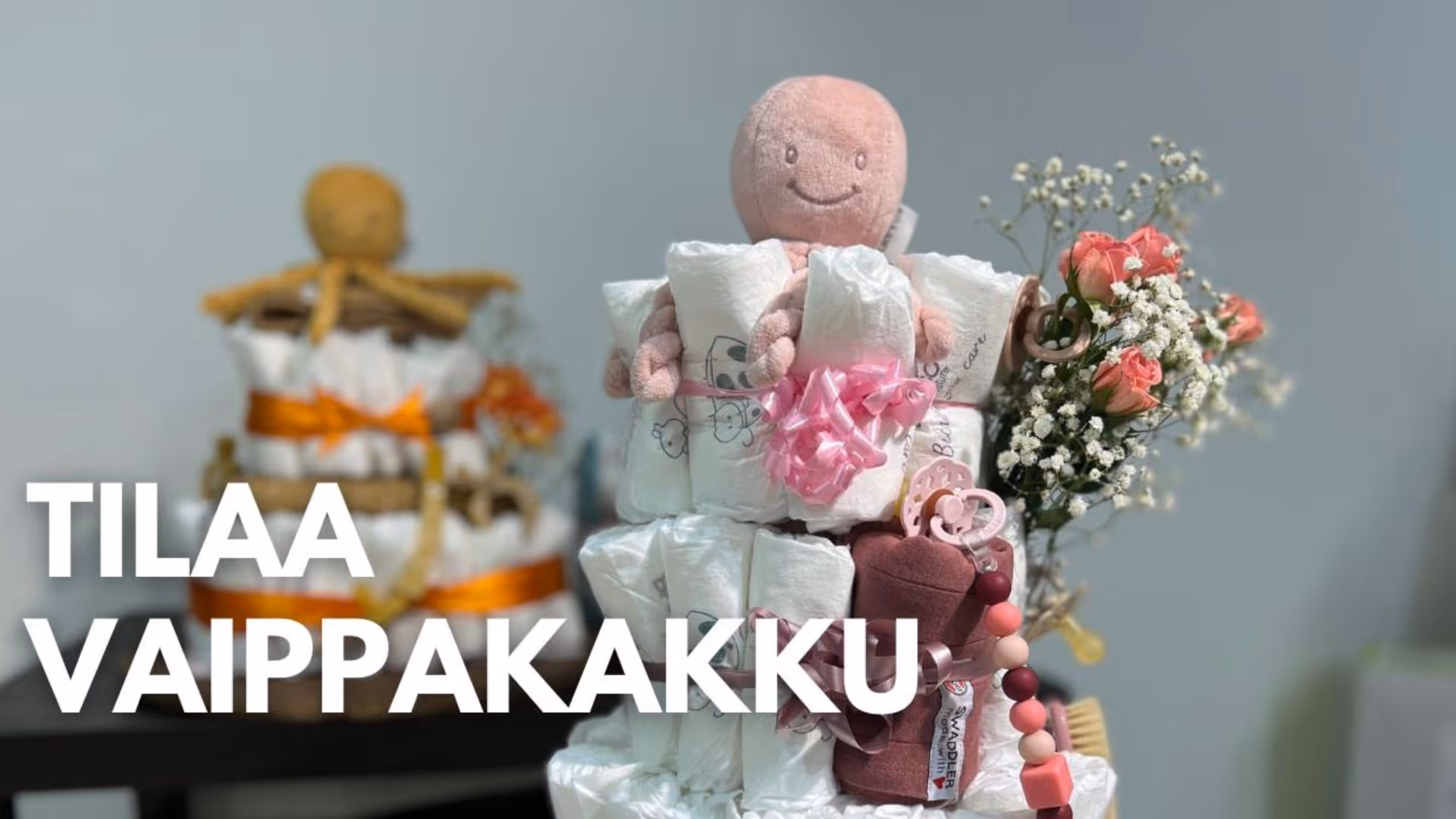 Jos haluat tehdä vaippakakun itse, mutta lahjojen valinta on hankalaa, löydät DIY-vaippakakun video-ohjeet täältä Youtube-kanavaltamme.
