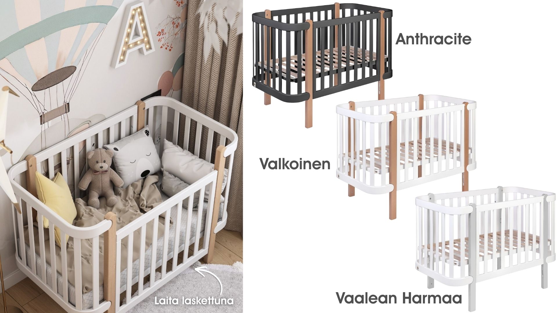 • Lapsen kasvaessa kehdon saa muutettua takaisin isommaksi pinnasängyksi