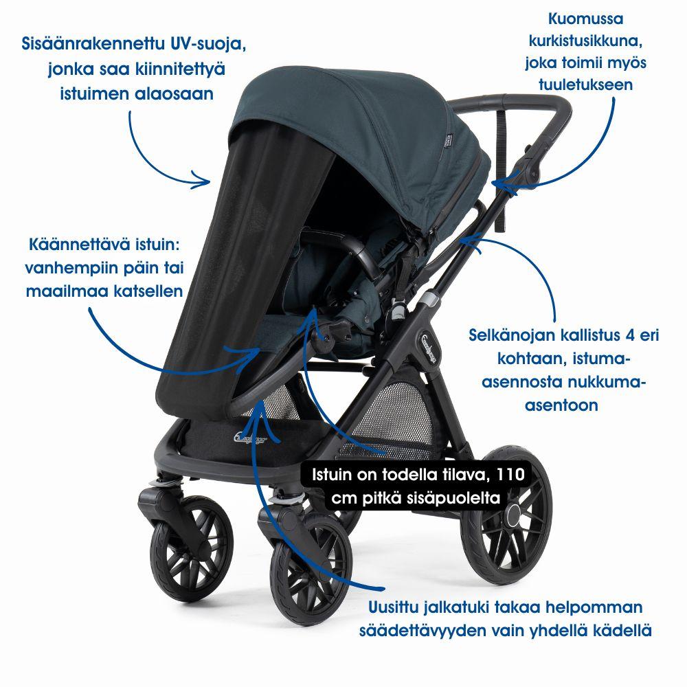 - New built-in UV protection - the cover can be pulled open from inside the top of the canopy and attaches to the bottom of the seat footrest, protecting the baby from the sun