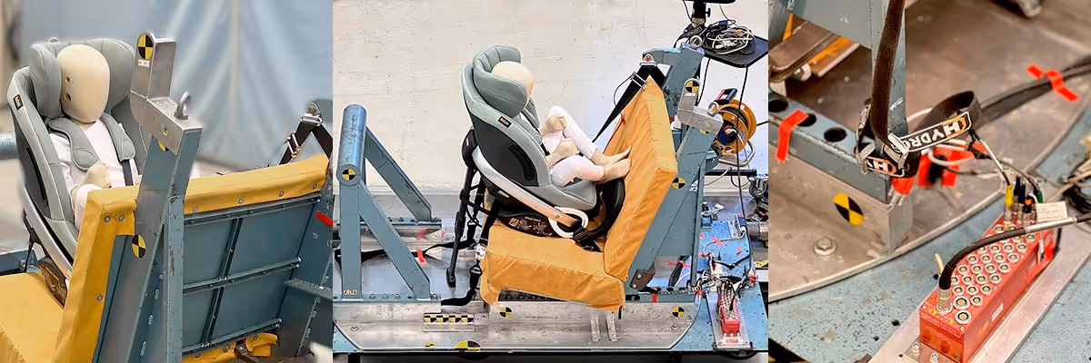 - The test is carried out by an independent testing laboratory, which is also used to measure the requirements of the EU R129 car seat standard